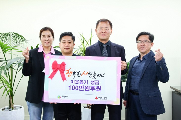 지난 18일 의왕시 소재 행사대행업체인 ‘행복한사람들’(대표 나현수)에서 이웃돕기 성금 100만 원을 의왕시에 전달했다.