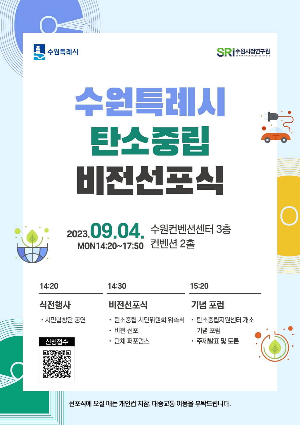 탄소중립 비전선포식은 오는 9월 4일 오후 2시 30분 수원컨벤션센터 3층 컨벤션 2홀에서 열린다.