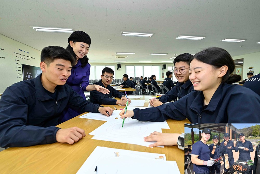 초급간부들이 활발히 소통할 수 있도록, 올해 개장한 ‘명량쉼터’에서 삼겹살을 구워 먹으며 동기간 친목을 도모할 수 있는 시간도 마련했다.