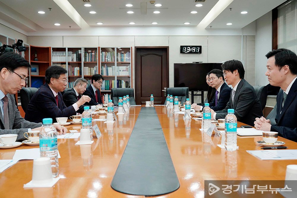 신상진 성남시장은 10일(현지시간) 뤼즈청 선양시장을 만나 양 도시간 협력방안을 논의했다. 뤼즈청 시장은 산·학 연계를 통한 경제 무역 협력 강화, 기업 간 기술연구개발 등을 제안했으며, 신 시장은 이를 적극 검토하기로 했다.