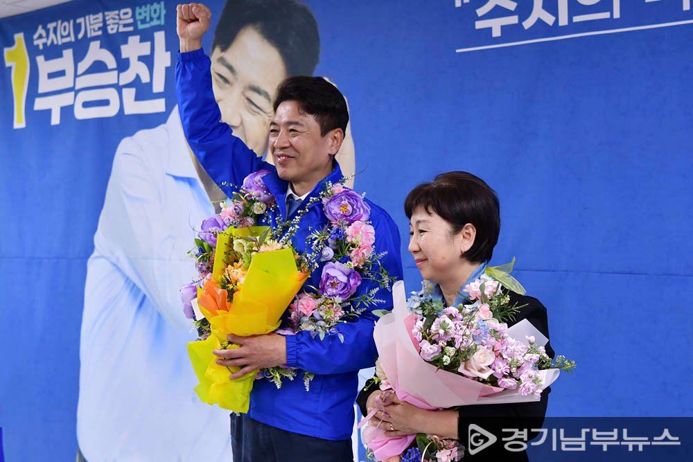부승찬 후보는 “윤석열 정권심판과 수지발전을 염원하는 민심이 만들어낸 승리”라며 “경제폭망·민생파탄·국민무시로 일관한 윤석열 정권, 제대로 심판하고 수지의 품격을 높이는 정치로 ‘수지의 기분좋은 변화’를 만들겠다.”는 당선소감을 밝혔다.