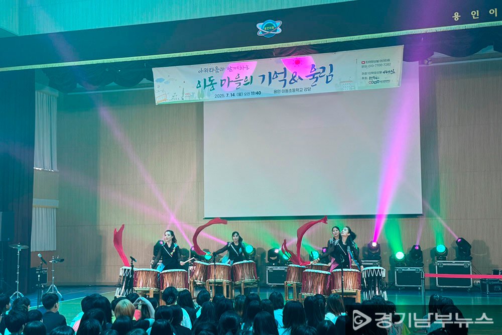 용인이동초등학교는 7월 14일, 학교 다목적실에서 전통 타악공연 ‘이동마을의 기억 & 울림’을 성황리에 개최했다. 이번 공연은 용인시 이동읍 일대가 국가산업단지로 개발되며 마을의 물리적 소멸을 앞둔 상황에서, 지역 주민과 학생들에게 위로와 희망을 전하고자 마련된 문화 위로 프로그램이다.