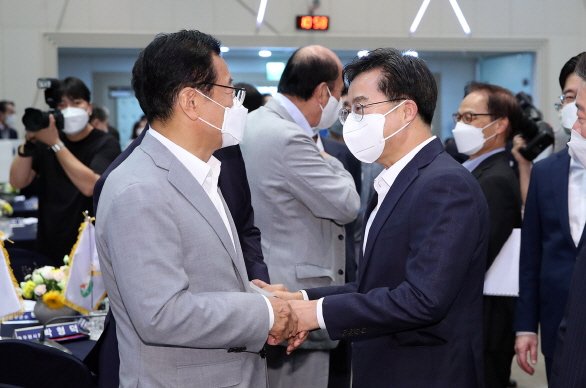 김동연 경기도지사와 민선 8기를 시작한 시장·군수가 취임 후 첫 만남을 갖고 경기도 발전을 위한 협치를 다짐했다. 이들은 도와 시·군 상호 협력·협의기구인 ‘정책협력위원회’를 운영하는 내용 등을 담은 ‘협치합의문’을 채택했다. 김동연 경기도지사는 26일 경기도경제과학진흥원 광교홀에서 ‘민선 8기 도지사-시장·군수 간담회’를 개최했다.