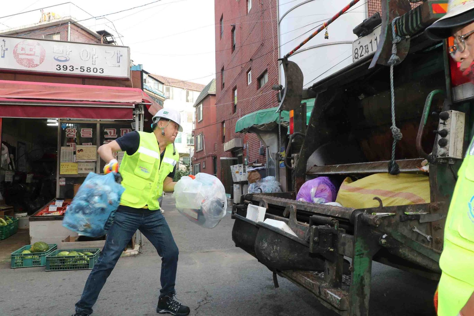 주말인 7월 1일 아침에는 산본시장에서 미화원들과 폐기물봉투를 리어카로 실어다 차에 올리는 작업을 마치고 해장국을 함께 나눴다. 골프장둘레길에서는 집게를 들고 시민들과 걸으며 플로깅에 나섰다.