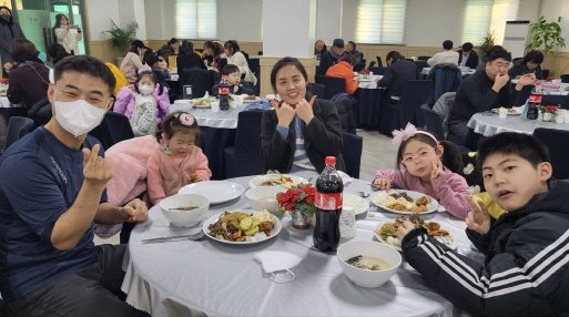 다문화가족들이 즐겁게 식사를 하고 있다.