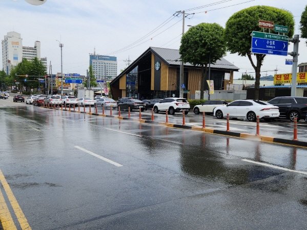 노면빗물분사시스템을 가동된 도로(경수대로)모습.