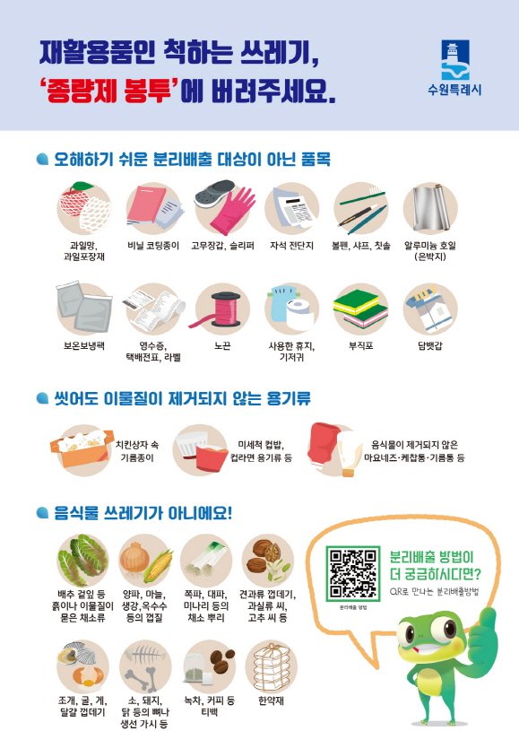 종량제 봉투에 버려야 할 쓰레기 안내.