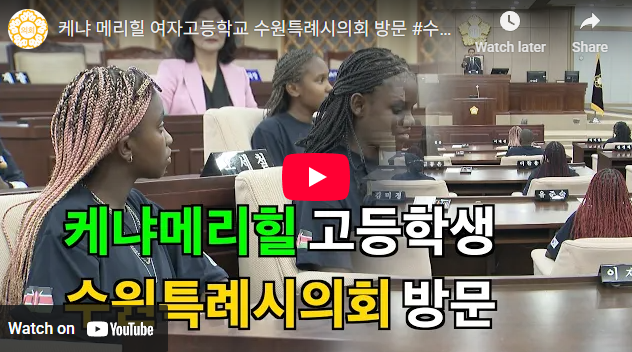 수원특례시의회 이재식 의장과 현경환 의원이 올 4월 11일(금) ‘케냐 메리힐 여자 고등학교(Maryhill Girl’s High School)‘들을 의회로 초대해 역사와 첨단미래를 품은 수원 방문을 환영한바 있다.