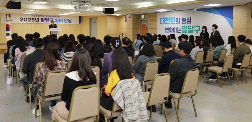 수원시 팔달구는 14일, 직원 등 100여 명이 참여한 가운데 팔달구청 대회의실에서 역사와 문화가 함께하는 ‘팔달구 3월의 만남’을 개최했다.
