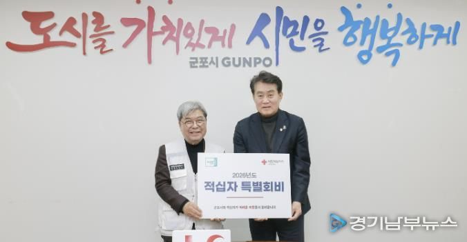 [경기남부뉴스 김혜숙 기자] 군포시는 16일 2026년도 적십자 특별회비 100만원을 대한적십자사 경기도지사에 전달하며 새해 따뜻한 나눔의 시작을 알렸다.
