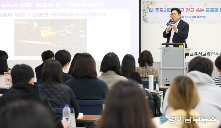 [경기남부뉴스 김혜숙 기자] 도성훈 인천광역시교육감은 20일 인천교육연수원에서 ‘초등 1급 정교사 자격연수’ 대상자 87명에게 ‘AI주도시대, 읽고, 걷고, 쓰는 교육의 미래’라는 주제로 강연을 진행했다.