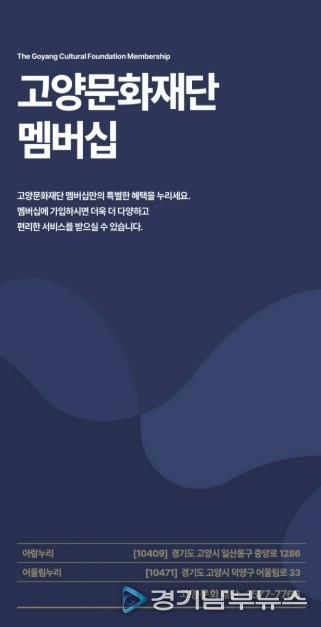 [경기남부뉴스 김혜숙 기자] 고양문화재단이 지난해 12월부터 본격적으로 운영을 시작한 ‘고양문화재단 멤버십’ 유료 회원제가 시민들에게 좋은 반응을 얻고 있다.