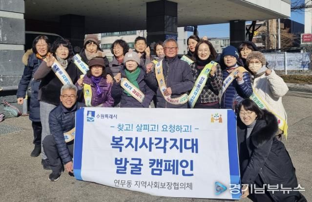 [경기남부뉴스 김정옥 기자] 수원시 장안구 연무동 지역사회보장협의체는 지난 21일 연무시장 거리에서 '복지사각지대 발굴 캠페인'을 진행했다.
