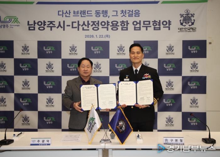 [경기남부뉴스 김혜숙 기자] 남양주시는 22일 해군 다산정약용함과 업무협약을 체결하고, 다산정약용 정신을 기반으로 브랜드 가치 확산과 문화·안보 분야 협력에 나섰다.