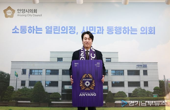 [경기남부뉴스 김혜숙 기자] 안양시의회 박준모 의장이 1월 23일 시의회 의장실에서 2026시즌 FC안양 연간회원권을 구매했다.
