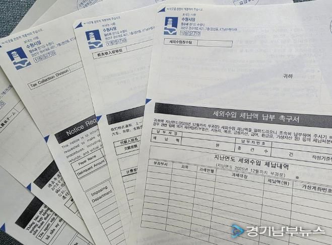 [경기남부뉴스 김정옥 기자] 수원특례시는 ‘2026 체납액 일소 원년의 해’ 추진에 따라 외국인 세외수입 체납 관리 방식을 정비하고, 2월부터 외국인 세외수입 체납자에게 체납 안내문을 7개 언어로 제작해 발송한다.
