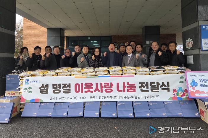 [경기남부뉴스 김정옥 기자] 수원시 장안구 연무동 행정복지센터는 지난 4일, 설 명절을 맞아 관내 어려운 이웃을 위한 나눔 전달식을 개최했다.