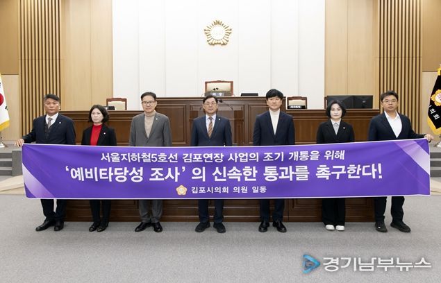 [경기남부뉴스 김혜숙 기자] 김포시의회는 5일 열린 제265회 임시회 제2차 본회의에서 시의원 14명이 공동으로 발의한 ‘서울지하철5호선 김포 연장사업 신속 예비타당성 조사 통과 촉구 결의안’을 채택했다.