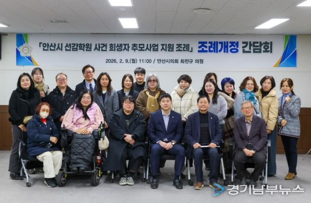 [경기남부뉴스 김혜숙 기자] 안산시의회 최찬규 의원은 2월 9일 안산시의회 3층 대회의실에서 ‘안산시 선감학원 사건 희생자 추모사업 지원 조례’ 일부개정을 위한 간담회를 개최했다.