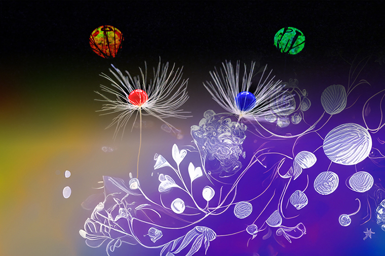 자세히 들여다보면 자연의 가장 미세한 순간을 인위적 개입으로 정지시킨 실험적 회화이자 사진이란 작품으로 거듭난 경우라 할 수 있다. 민들레홀씨라는 극도로 가벼운 존재 위에 수채화 물방울을 떨어뜨리는 행위는 우연과 통제를 동시에 보여주는 선택의 장면이고, ‘홀씨’하면 떠오르는 것은 바람에 날리며 몸을 맡기는 자유로운 생명체이지만 빨강과 파랑의 물감 방울이 그것을 붙잡고 무게를 부여하면서 상반된 성질의 결합을 작품 전체 분위기를 만들며 아슬아슬한 느낌을 자아내게 해준다.