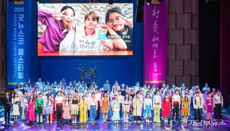 [경기남부뉴스 김정옥 기자] 국제 NGO단체 국제청소년연합(IYF, International Youth Fellowship)이 주최하는 ‘2026 굿뉴스코 페스티벌’이 8일 인천시 연수구에 위치한 IYF 인천센터에서 열려 시민 1600여 명이 참석한 가운데 성황리에 개최됐다.굿뉴스코 페스티벌은 1년간 해외봉사활동을 마치고 귀국한 굿뉴스코 단원들이 각국에서의 변화를 스토리텔링하는 봉사 체험담과 트루스토리 ▲ 대륙별 활동 보고 ▲ 세계 문화 공연 ▲ 세계문화체험·전시 ▲ 굿뉴스코 모집 설명회 등으로 구성됐다.