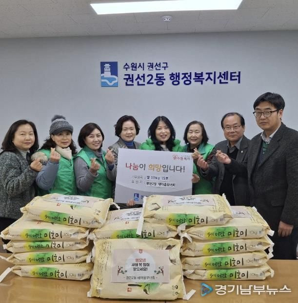 [경기남부뉴스 김정옥 기자] 권선구 권선2동 새마을부녀회가 지난 9일, 설 명절을 맞아 사랑의 쌀 나눔 행사를 가졌다.