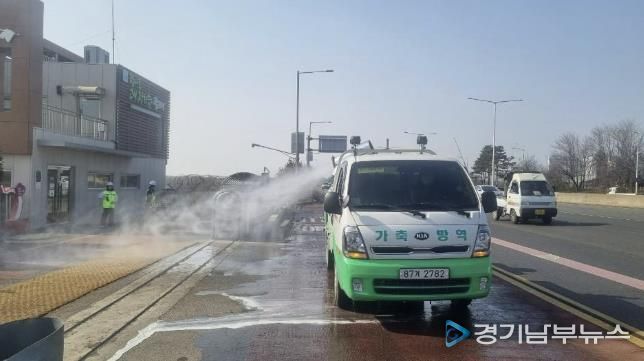 또한 외부에서 유입되는 바이러스를 차단하기 위해 입출입 차량에 대한 소독을 철저히 실시한다. 고양시를 출입하는 모든 축산 차량은 시 농업기술센터 내에 설치된 제1거점 소독시설에서 소독을 실시한 후 필증을 발급받도록 의무화했다.