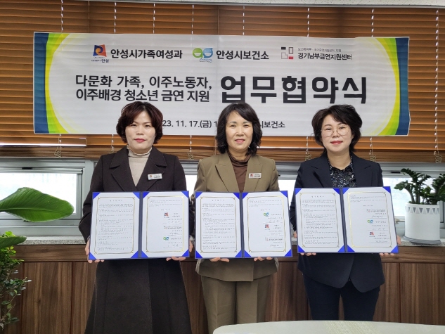 안성시에 거주하고 있는 다문화가족의 건강증진 및 금연환경 조성을 위하여 경기 남부 금연지원센터, 가족여성과, 건강증진과가 지난 17일 업무협약을 체결했다.