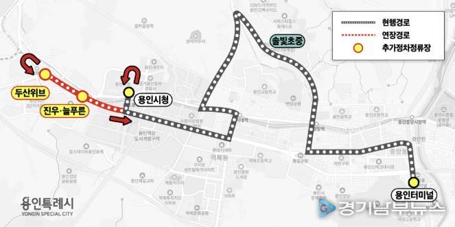 [경기남부뉴스 김혜숙 기자] 용인특례시는 오는 3월 3일부터 마북동과 단국대학교 내부를 연결하는 도로 개통에 맞춰 502번 마을버스 노선을 단국대까지 연장해 운행한다고 25일 밝혔다.