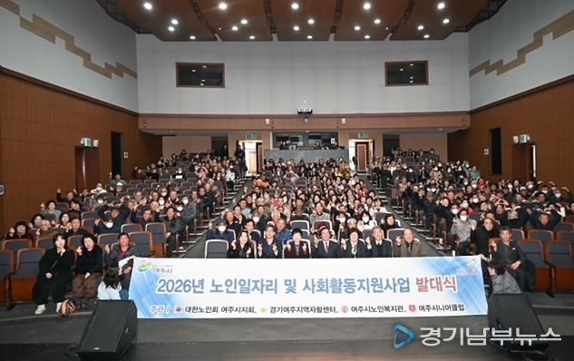 [경기남부뉴스 김혜숙 기자] 지난 2월 27일, 여주 세종국악당에서 여주시 노인일자리 4개 수행기관(대한노인회여주시지회 취업지원센터, 경기여주지역자활센터, 여주시노인복지관 실버인력뱅크, 여주시니어클럽)이 함께 ‘2026년 노인일자리 및 사회활동 지원사업’의 성공적인 시작을 알리는 발대식을 개최했다.