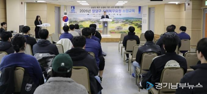 [경기남부뉴스 김정옥 기자] 수원시 팔달구는 지난 5일 팔달구청 대회의실에서 사회복무요원 전원을 대상으로 2026년 상반기 소양교육을 실시했다.