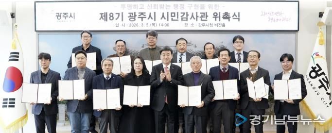 제8기 시민감사관은 총 20명으로, 광주시 거주 시민으로 구성된 명예감사관 5명과 전문 자격 및 실무 경험을 갖춘 전문감사관 15명으로 구성됐다. 임기는 2029년 3월까지 3년이다.