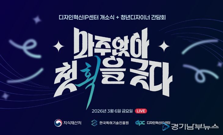 [경기남부뉴스 홍수정 기자] 지식재산처는 3월 6일 한국특허기술진흥원(서울 마포구)에서 ‘디자인 혁신 지식재산 센터(DIPC, Design Innovation IP Center)’ 개소식을 개최하고 청년 디자이너들과 현장 소통 간담회를 가진다고 밝혔다.