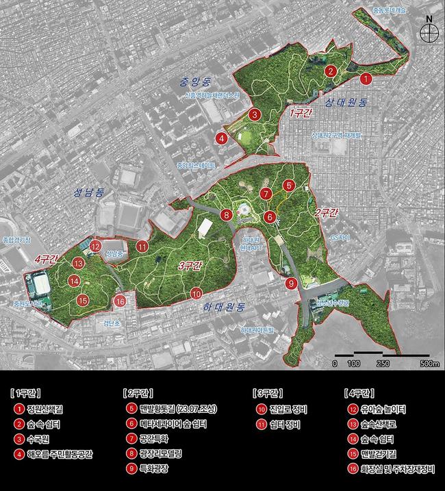 시는 대원공원 내 미정비 공원 부지를 중심으로 중앙·하대원·성남동 구간을 1∼4구간으로 특화했다.