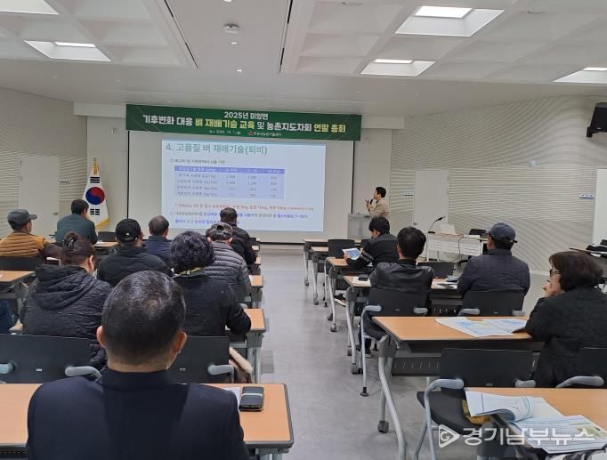 [경기남부뉴스 김혜숙 기자] 안성시농업기술센터 남부농업기술상담소는 지난 12월 1일 ‘2025년 미양면 기후변화대응 벼 재배기술 교육’을 실시했다.