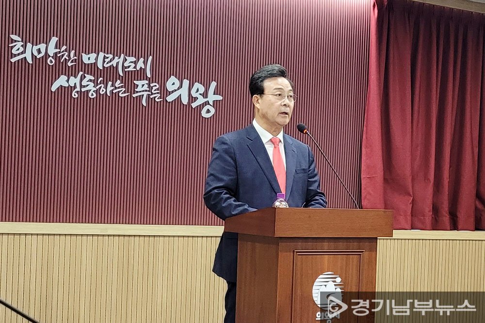 김성제 의왕시장 특별기자회견, 8일 의왕시청 중회의실