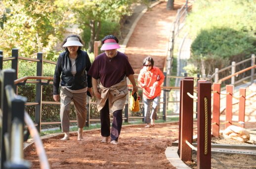 황톳길은 공원 내 구릉지를 활용한 순환형 모델로 조성했으며, 세족장 및 안전 손잡이를 설치해 이용자 편의성에 심혈을 기울였다.