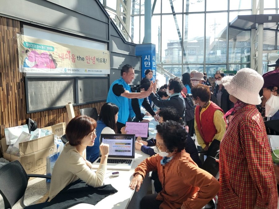 이번 캠페인은 정신건강복지센터 등록 회원 10여 명이 직접 동참하여, 정신건강에 대한 오해와 편견을 해소할 수 있는 인식개선 OX퀴즈와 퍼즐맞추기 등의 체험 존을 운영하고, 스트레스 측정을 통한 마인드-체크 확인 및 정신건강복지센터 상담과 이용 안내 등 정신건강 정보를 제공하는 시간을 가졌다.