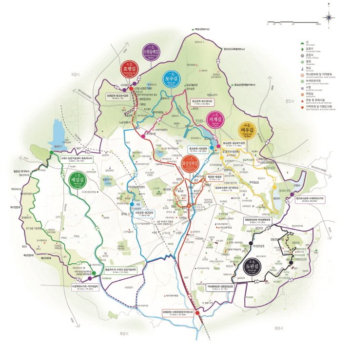 수원시 걷기 좋은 8개 코스 개발, 산길과 물길에 다양한 자원 연계, 모수길·지게길·매실길·여우길·도란길 등 자연과 생태가 함께하는 길 추천