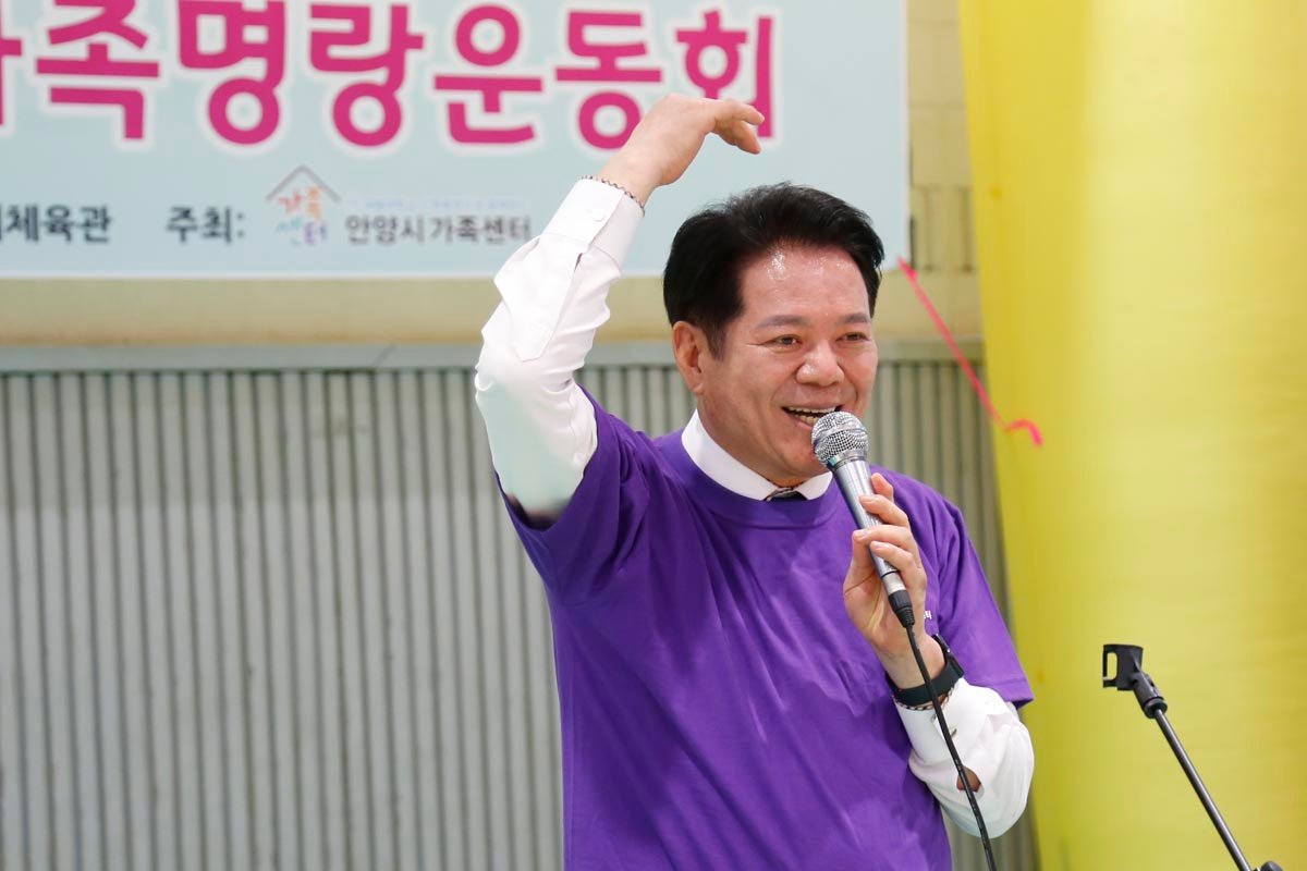 세계인의 날, 안양시 가족센터 가족명랑운동회에서 축사하는 최대호 안양시장