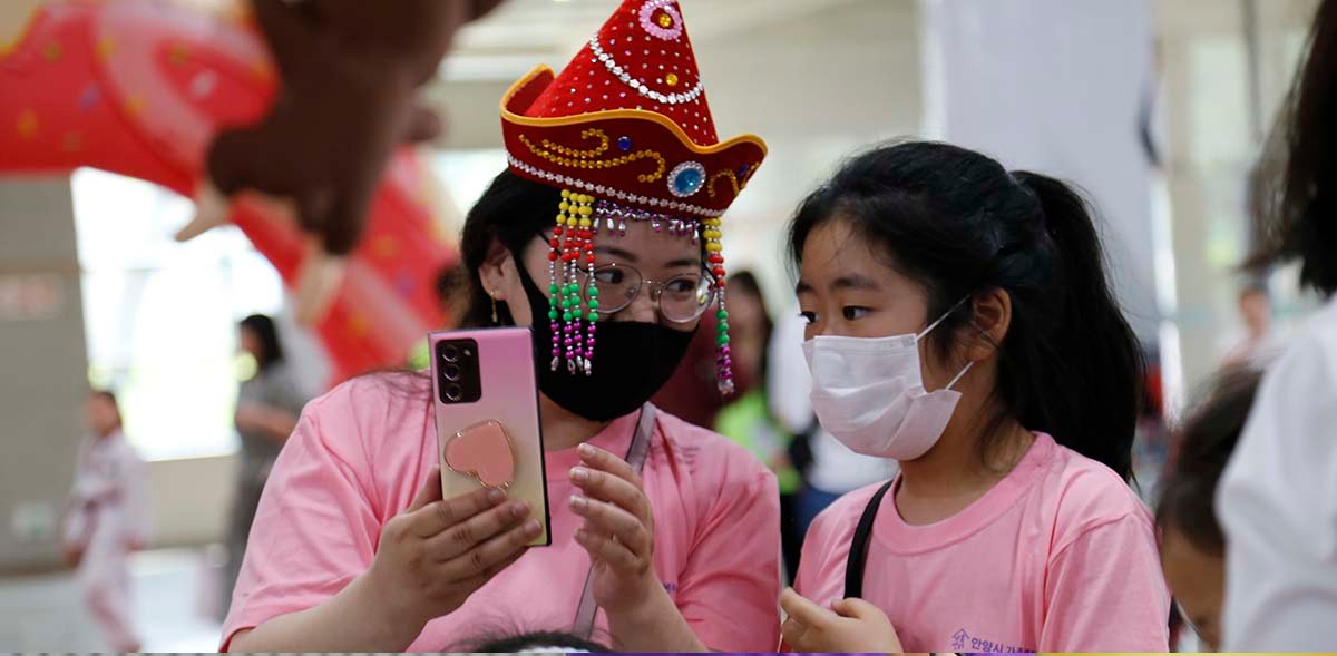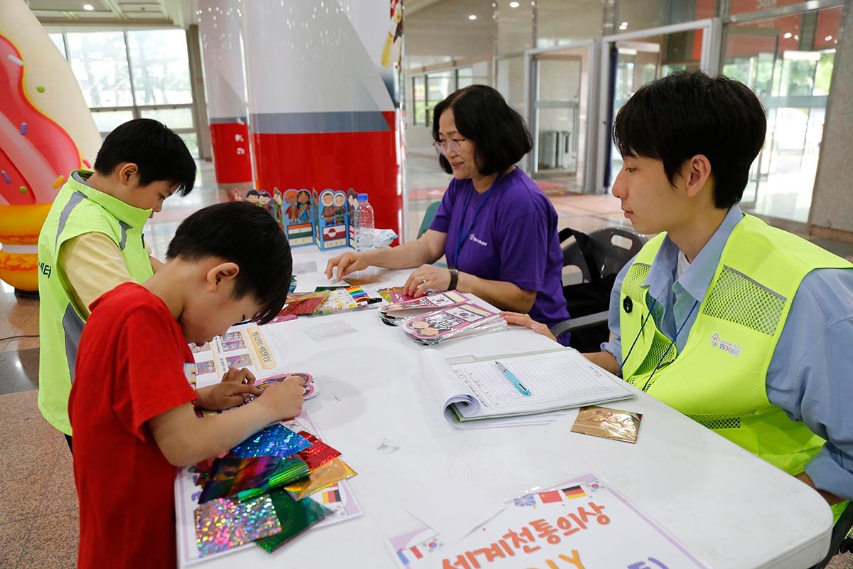 안양시 가족센터 가족명랑운동회. 세계문화체험 중인 어린이들