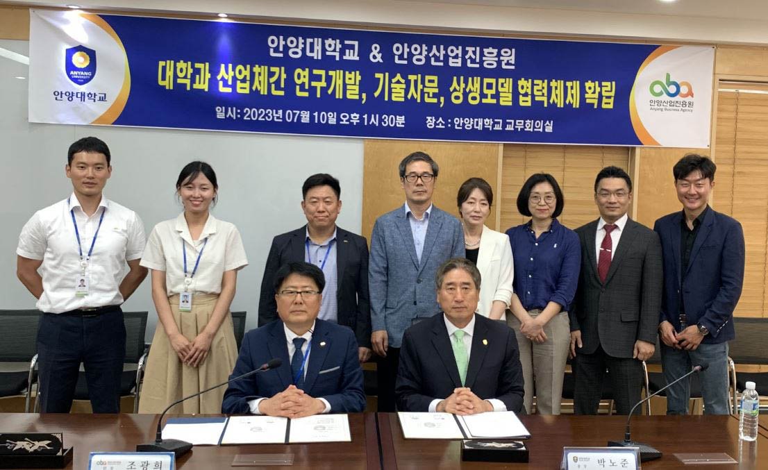 지난 7월 10일 안양산업진흥원은 안양대학교와 산업체의 기술연구개발 및 상생모델 창출 등 협력체제 구축을 위한 업무협약을 체결했다고 11일 밝혔다.