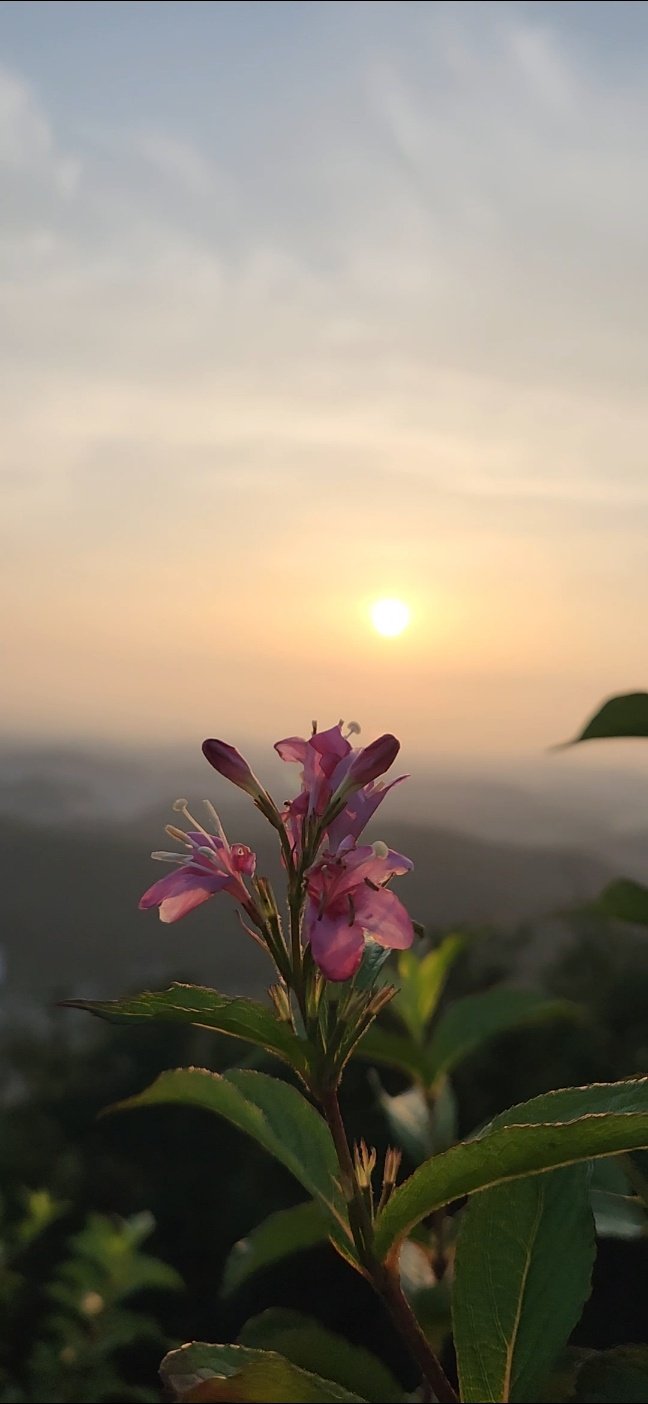 화성시에 있는 태행산은 높이 294.8m로 일몰과 야경이 아름다운 산이다. 비가 갠후 오늘 오후 7시 아름다운 꽃 뒤로 저멀리 일몰이 지고 있는서해바다가 희미하게 보이고 있다.