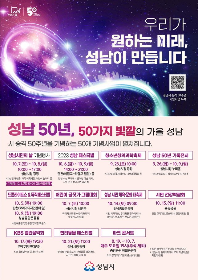 성남시, 시 승격 50주년 기념 주요 행사 안내 포스터