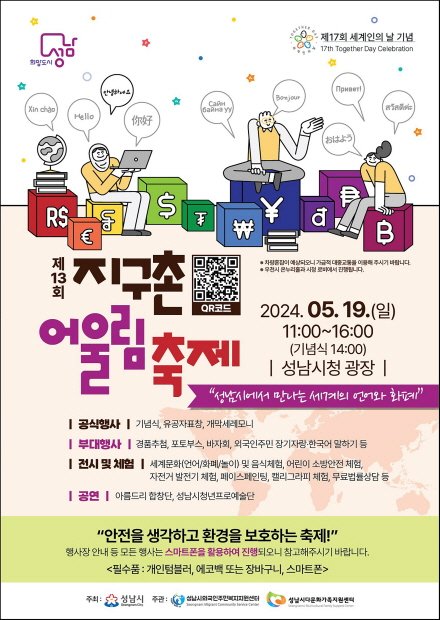 성남시는 오는 5월 19일 오전 11시~오후 4시 시청 광장에서 ‘제13회 지구촌 어울림 축제’를 연다.