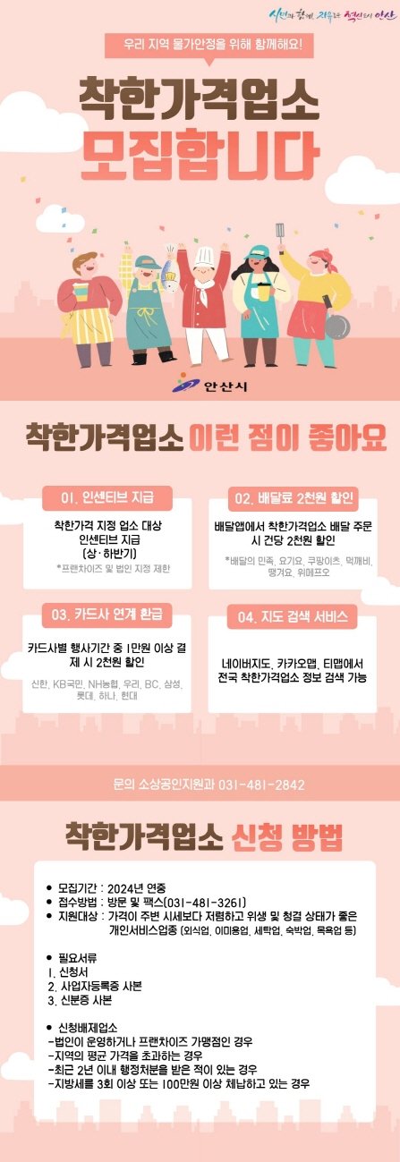 안산시, 신규 착한가격업소 수시 모집 및 민생 물가안정 도모s