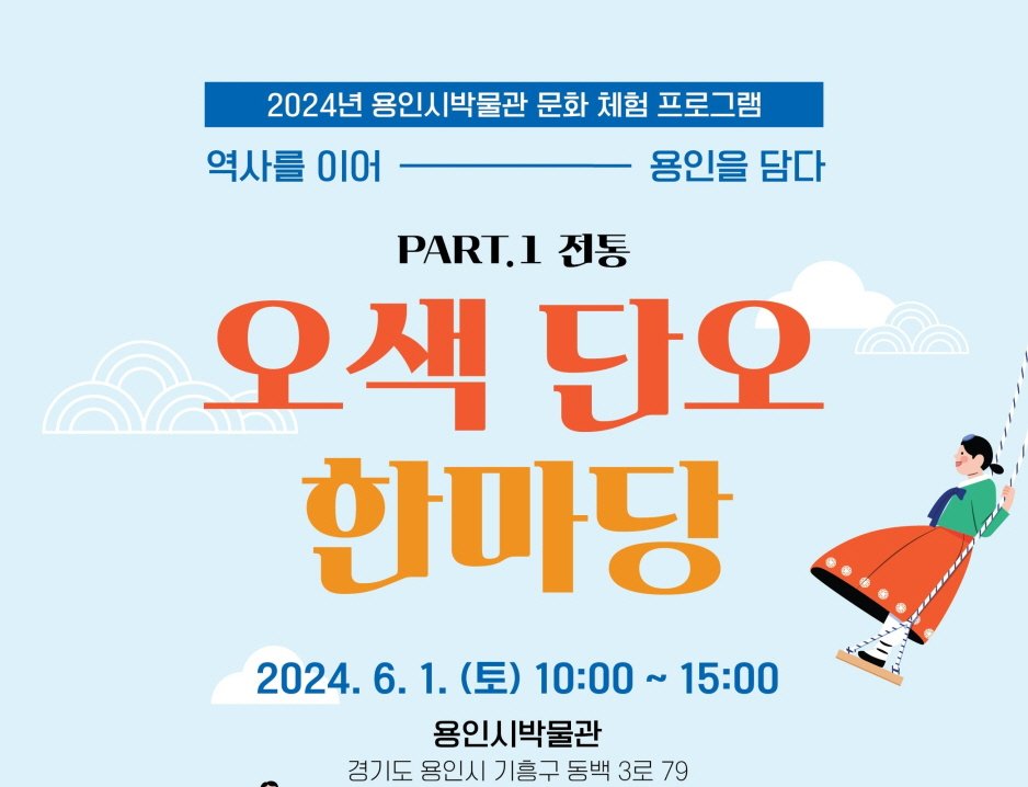 용인시박물관이 6월 1일 민족 고유의 세시풍속 ‘단오날’을 맞이해 ‘역사를 이어 용인을 담다 Part1. 전통 : 오색 단오 한마당’을 진행한다고 20일 밝혔다.