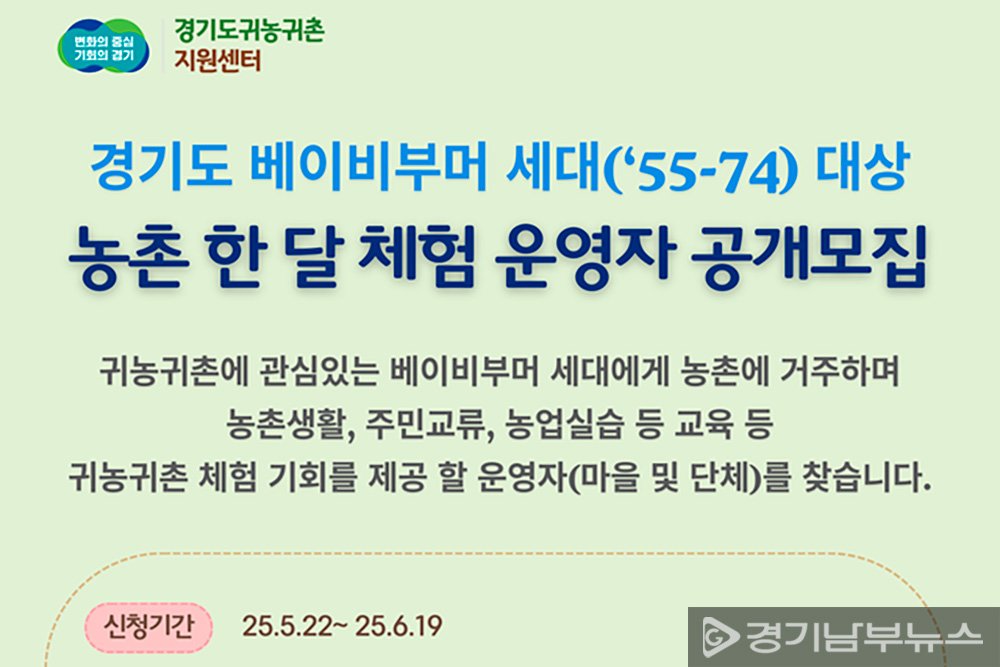 경기도 베이비부머 세대 농촌 한달 체험 운영자 공개모집 포스터