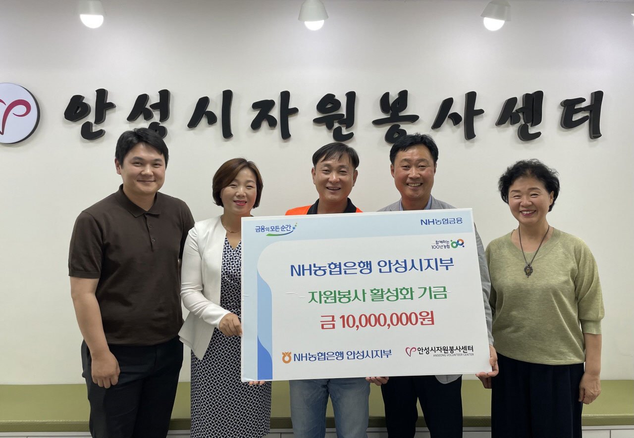 지난 7월 3일 NH농협은행 안성시지부가 지역사회 자원봉사 활성화 기금 일천만 원을 안성시자원봉사센터에 기탁해 전달식을 진행했다.