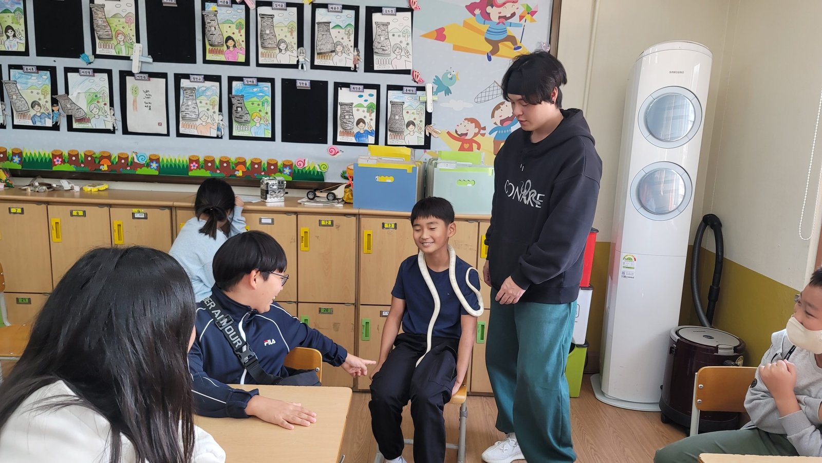 ▲오산초 진로교육 체험현장, "특수 분장을 직접 체험해 보니 신기하고 이런 직업도 중요한 일인 것 같아요."